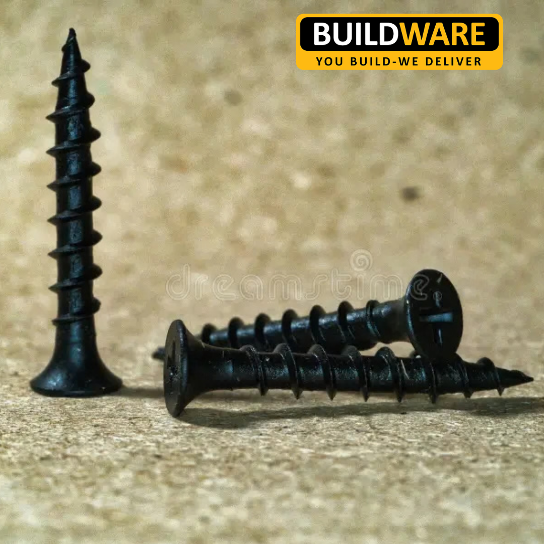 Coarse thread black phosphate drywall screws supplied in a box of 200 with a free driver bit. Designed for fixing plasterboard to timber studwork, offering strong bite, fast drive‑in performance and smooth countersinking for reliable, professional drylining.
